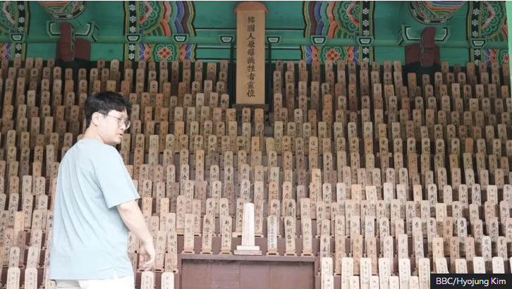 A memorial hall in Hapcheon holds 1,160 wooden tablets - each one bearing the name of a Korean killed by the nuclear bomb